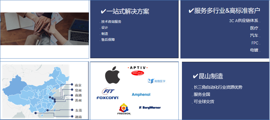 主營高標(biāo)準(zhǔn)非標(biāo)定制設(shè)備,3C、電鍍、沖壓、FPC、成型等多行業(yè)上下料設(shè)備,視覺類軟硬件設(shè)備,并提供相關(guān)技術(shù)支持和整套解決方案。 自有視覺團(tuán)隊(duì)提供非標(biāo)設(shè)備常規(guī)視覺服務(wù)。與業(yè)界頂尖視覺公司長期合作,一站式提供外觀檢AI深度學(xué)習(xí)服務(wù)。